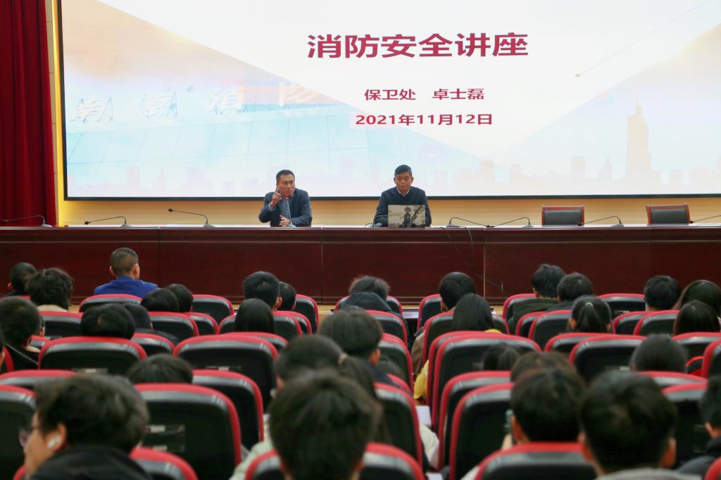 卓士磊副处长讲座中从消防安全基础知识、消防安全“四个能力”建设、消防安全标识、火场逃生等四个方面为同学们进行了详细的解读,通过具体的火灾案例向同学们介绍近年来高校火灾造成的人员伤亡和经济损失情况,讲解了安全用电的注意事项和火场逃生的正确方法,提醒同学们要注意用电安全。最后,他还结合Beat365官网的一些实际情况和同学们进行交流。