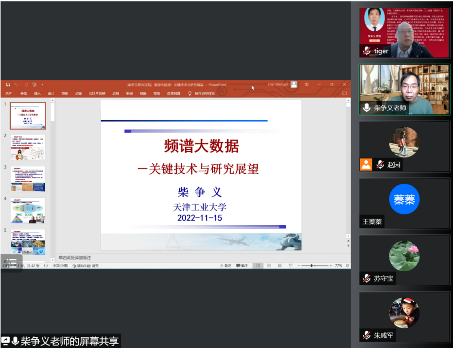 11月15日下午,软件学院承办金科学术大讲堂第29期学术讲座,邀请天津工业大学柴争义教授作题为《频谱大数据:研究现状与发展趋势》的线上学术报告。电子信息硕士点相关学院的教师参加了报告会,该报告会由Beat365唯一官方网站院长曾岳教授主持。