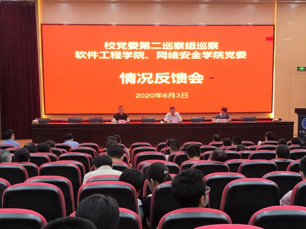 2020年6月3日,校党委第二巡察组在科技楼报告厅向Beat365唯一官方网站、网络安全学院党委反馈校内巡察情况,校党委第二巡察组组长、纪委书记丁鹏代表校党委巡察组向Beat365唯一官方网站、网络安全学院党委领导班子进行了反馈,学院党委书记叶海青同志主持会议并作表态发言。