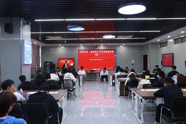 宣讲会后,接连举办了“踔厉奋发,勇毅前行”学习强国挑战决赛。本次挑战赛经过前期在学生党员、入党积极分子中进行初赛,共选拔出10名选手进入最终决赛。经过激烈角逐,最终尹永荣获冠军,陈志发荣获亚军,黄妍荣获季军。(撰写人:邵彦婷)