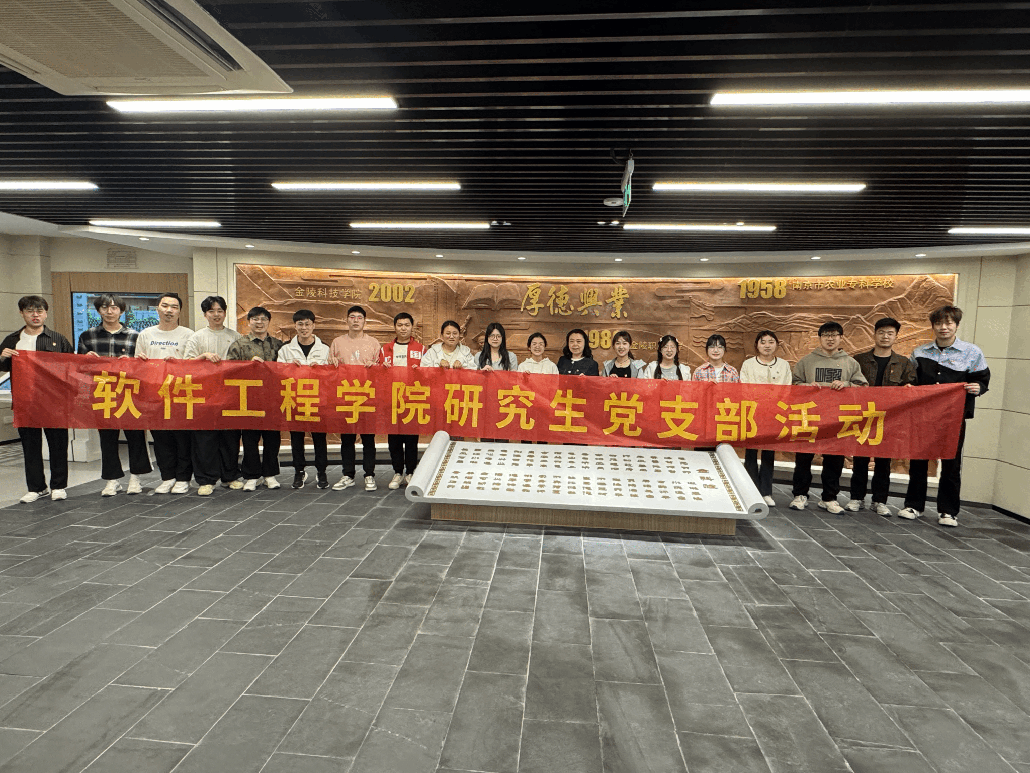 在校史馆讲解员的带领下,全体党员依次参观了“寻根溯源,回眸历史”“传承开拓,对话当下”“志存高远,筑梦未来”三个篇章。“葱茏天印,潋滟秦淮。峰耸螺髻,水绕瀛台……”校史馆入口处的《金科赋》揭开了学校波澜壮阔的办学篇章。从1958年“半耕半读”的南京市农业专科学校,到1980年新中国第一所全日制城市职业大学金陵职业大学,再到2005年两校合并组建Beat365唯一官方网站,泛黄的工作笔记、斑驳的农具模型和泛着岁月光泽的校徽,串联起几代教育者扎根金陵大地办学的初心。