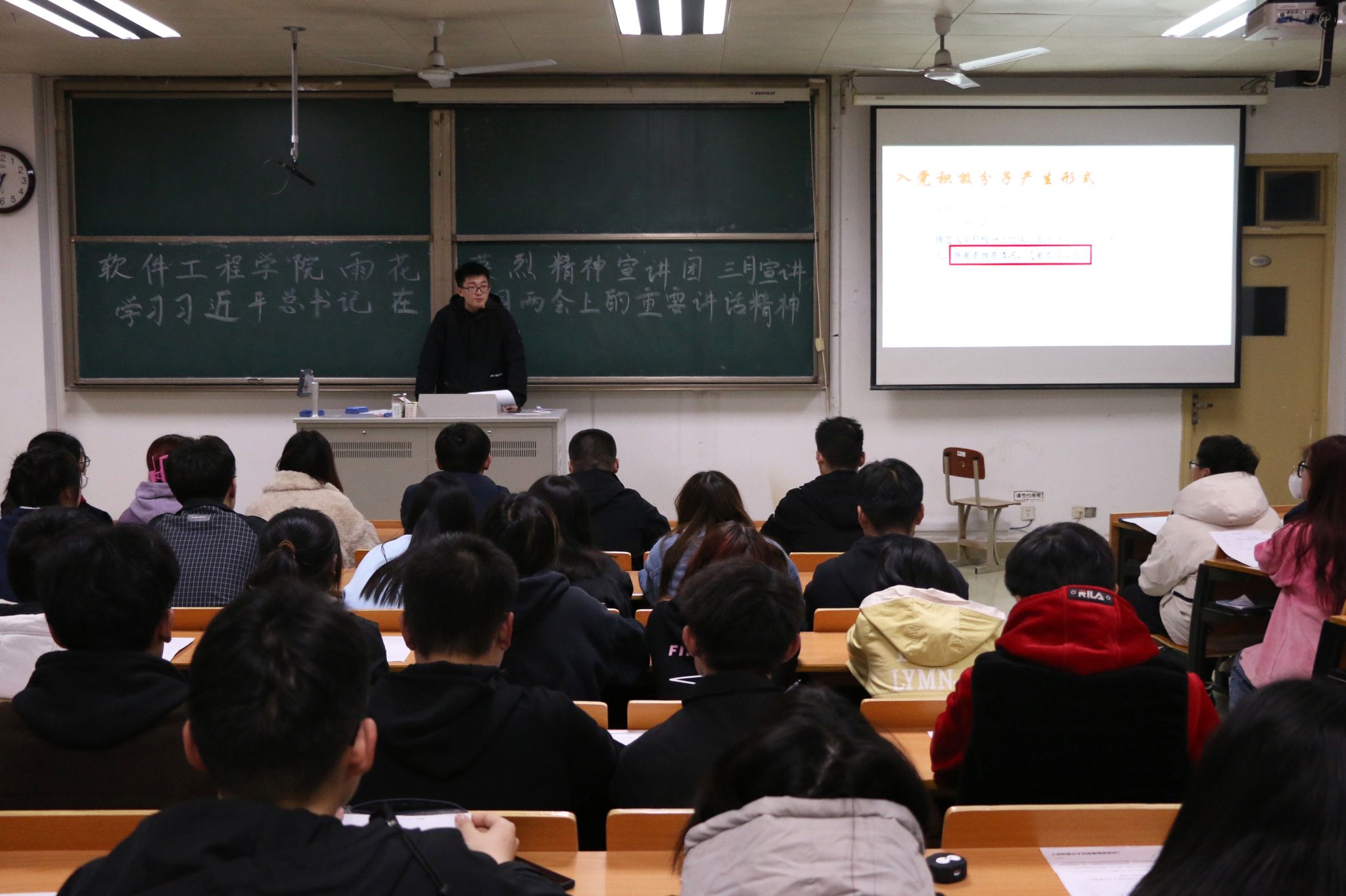 为深入学习贯彻习近平总书记在第十四届全国人民代表大会第一次会议闭幕式上的重要讲话精神,积极引导全院青年学生不断增强“四个意识”、坚定“四个自信”、做到“两个维护”、深刻领悟“两个确立”,3月19日晚,Beat365唯一官方网站雨花英烈精神宣讲团组织学院入党申请人、入党积极分子、学生党员于教学楼1号楼1332教室,举行了以“踔厉奋发、勇毅前行”为主题的学习习近平总书记系列重要讲话精神专题宣讲活动,本次宣讲由宣讲团成员、19级学生党员倪岩主讲。