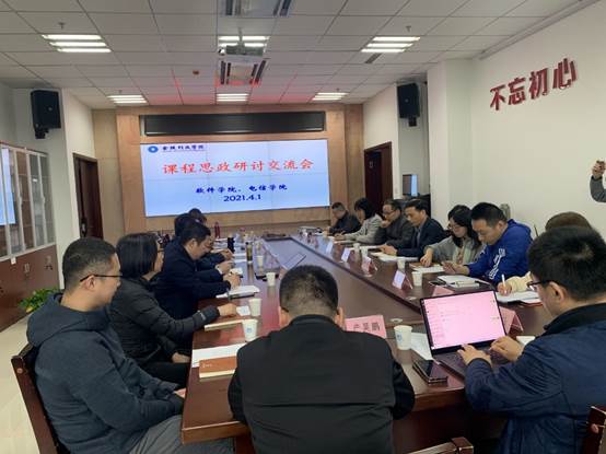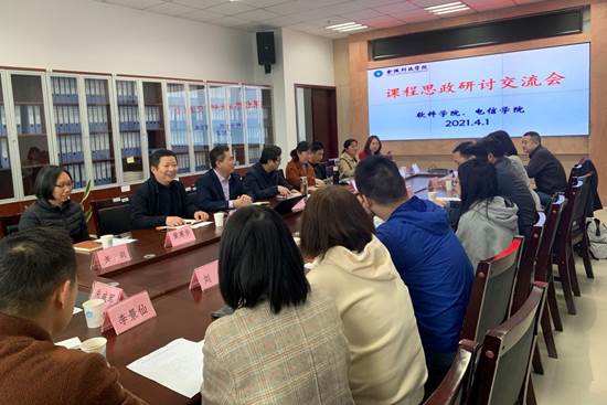 4月1日下午,软件学院与电信学院在科技楼2-325会议室举办了课程思政研讨交流会,电信学院王昭诚书记、杨娟副院长,软件学院徐志国书记、胡勇副院长参加会议,会议特邀马克思主义学院秦广东副教授、教务处刘旭明副处长到场指导,软件学院、电信学院共14位专业课教师参加会议交流,会议由胡勇副院长主持。