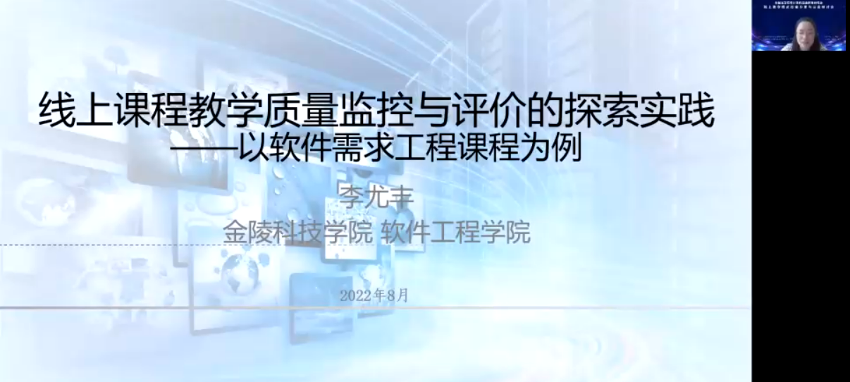 Beat365官网国一流课程负责人李尤丰教授作为特邀嘉宾之一出席大会,并作题为《线上课程教学质量监控与评价的探索实践——以软件需求工程课程为例》的报告。