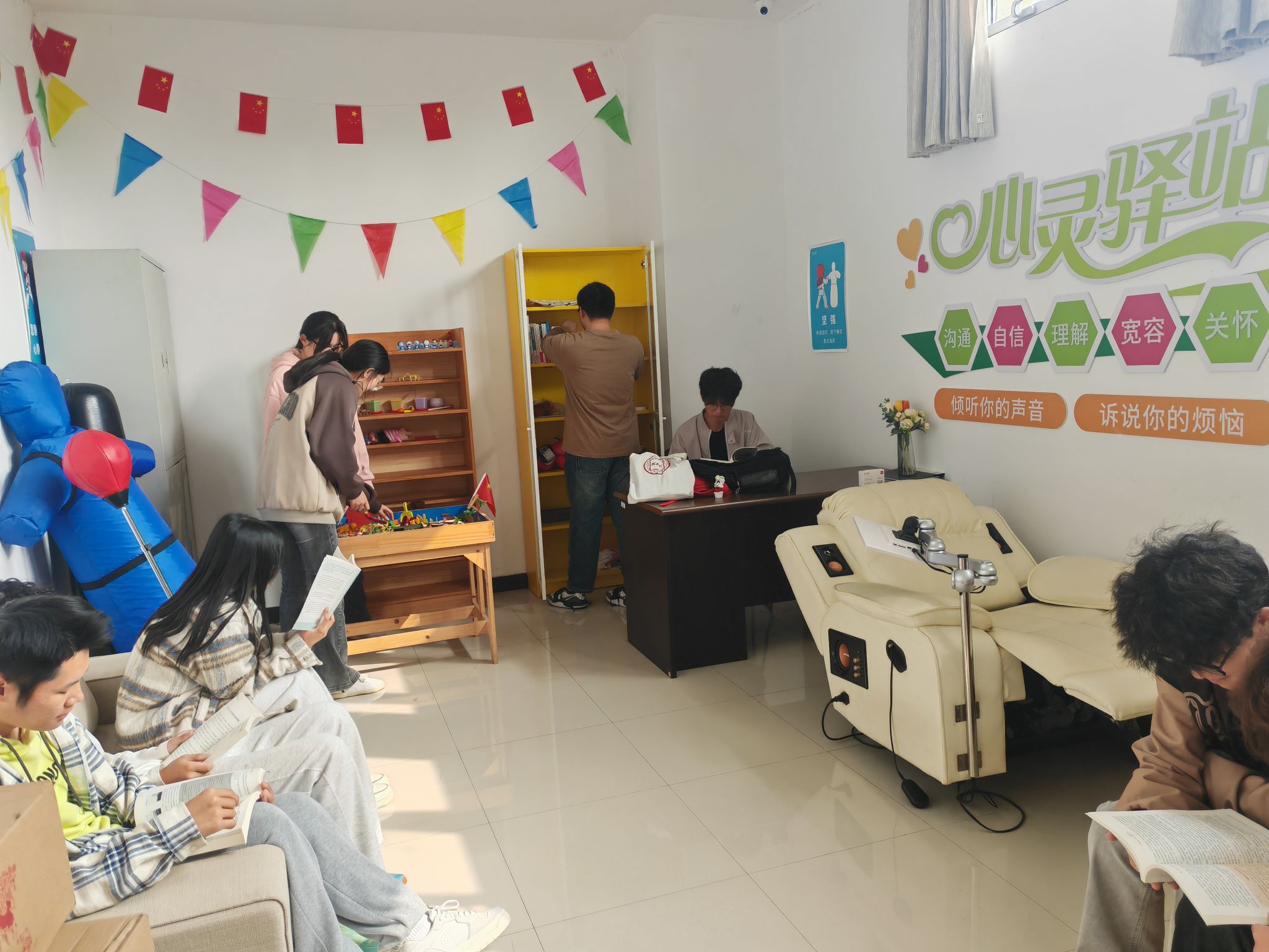 会议伊始各个班级心理委员做了自我介绍,增进了彼此了解。随后殷燕老师就自身的工作经历进行了分享,介绍了学院心理相关工作的未来规划与发展前景,指出大家要积极参与各项心理活动,不断提升自我能力。活动的最后,大家参观了学院心理咨询室。