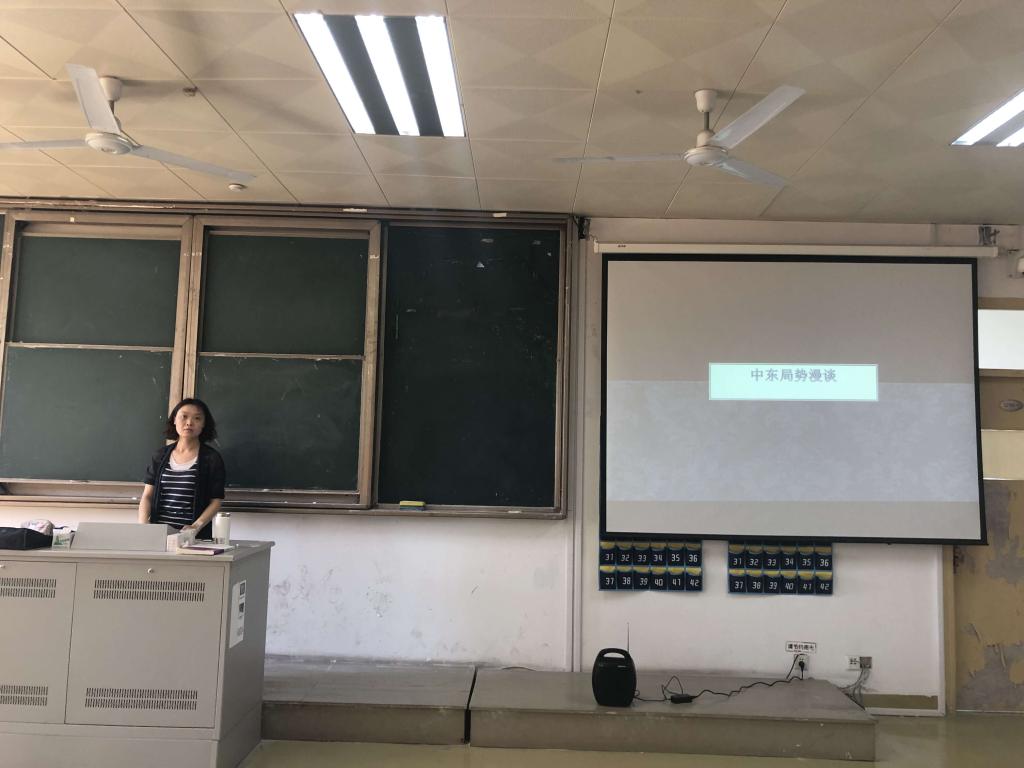 此次讲座的主题为“中东局势漫谈”。讲座伊始,胡老师向大家从人类学等方面向大家详细介绍了中东,并讲述了中东的发展困境。接着向同学们介绍了中东的主要教派。讲座的最后,胡老师提出了在目前中东变局中我们将要如何面对的问题。