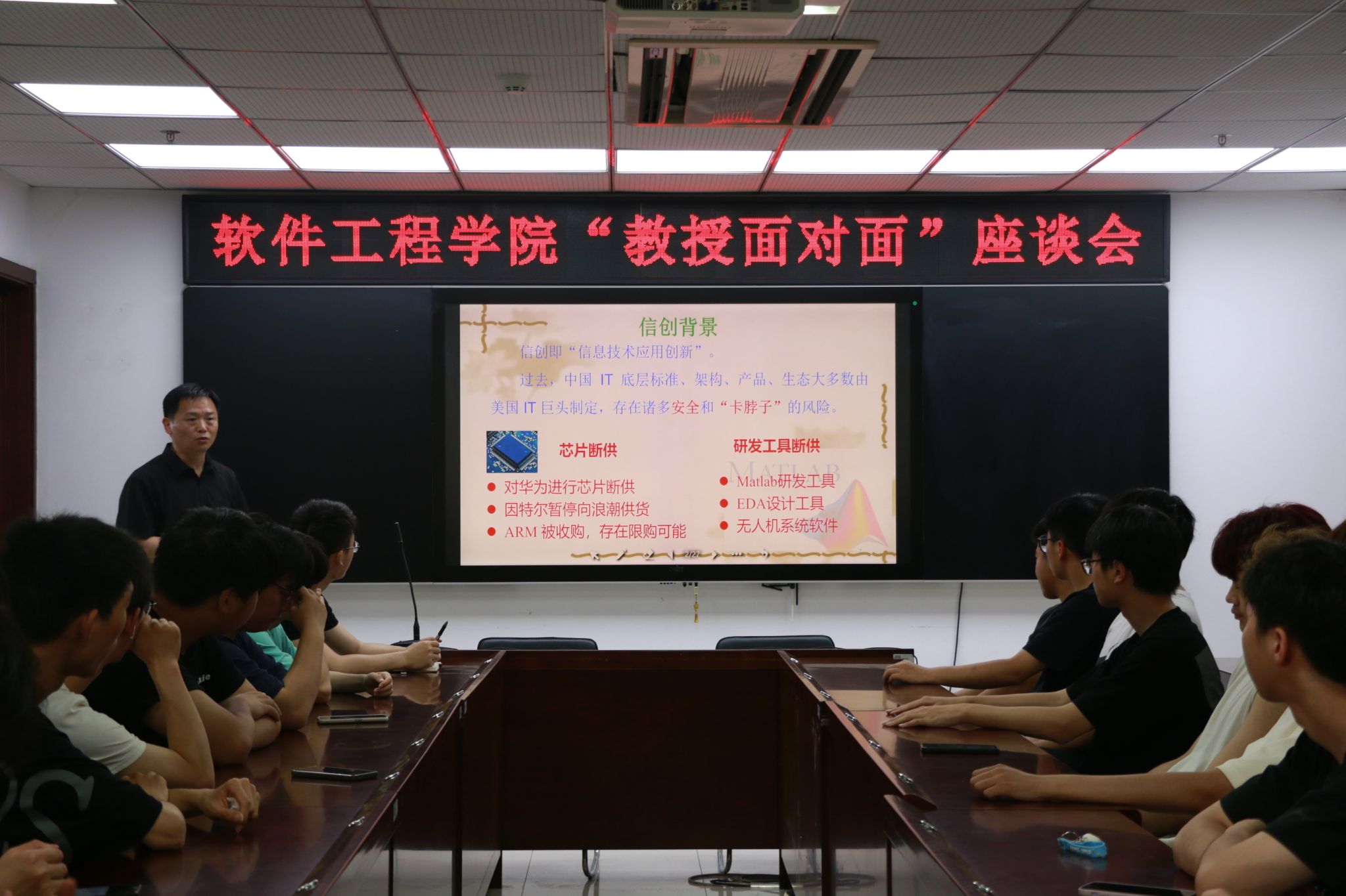 Beat365唯一官方网站为加强师生互动,提高教学质量,于5月19日举行了教授面对面活动。软件工程(嵌入式培养)系主任王智钢出席本次信息安全讲座。