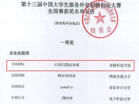 软件学院共有三个团队挺进全国总决赛,最终,以叶秋实等同学组成的“让我们荡起双蒋”团队取得国家一等奖,以沈城等同学组成的“我想起高兴的事情”团队和以项卢忆等同学组成的“粉红猪一家亲”团队分别取得了国家二等奖和三等奖的优异成绩。