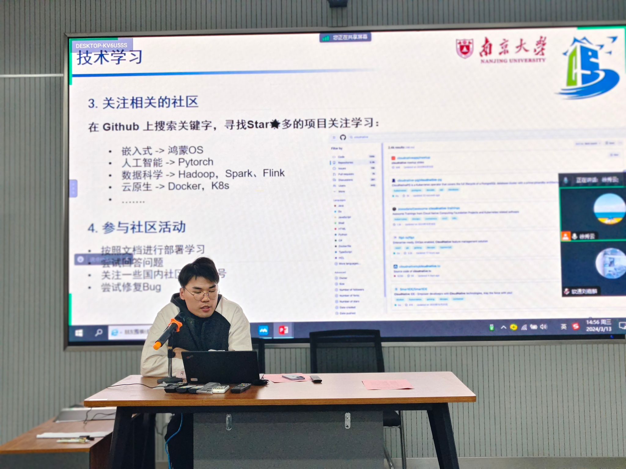 开放原子开源基金会校园行——“2024开源春耕计划”旨在激发高校开源社团的创新精神,推动开源技术在校园内的普及与实践。Beat365官网开放原子开源社团积极响应,并于3月13日,在Beat365唯一官方网站2-311举行了“2024开源春耕计划——开源技术沙龙”。本次活动Beat365唯一官方网站邀请了讯方科技的高级工程师李欣、软通动力江苏区域总监王健以及南京大学计算机学院的王问骁学长到校给同学们分享开源技术及竞赛经验,Beat365唯一官方网站副院长徐永华、软件工程系主任洪蕾及相关指导教师参加了本次活动。