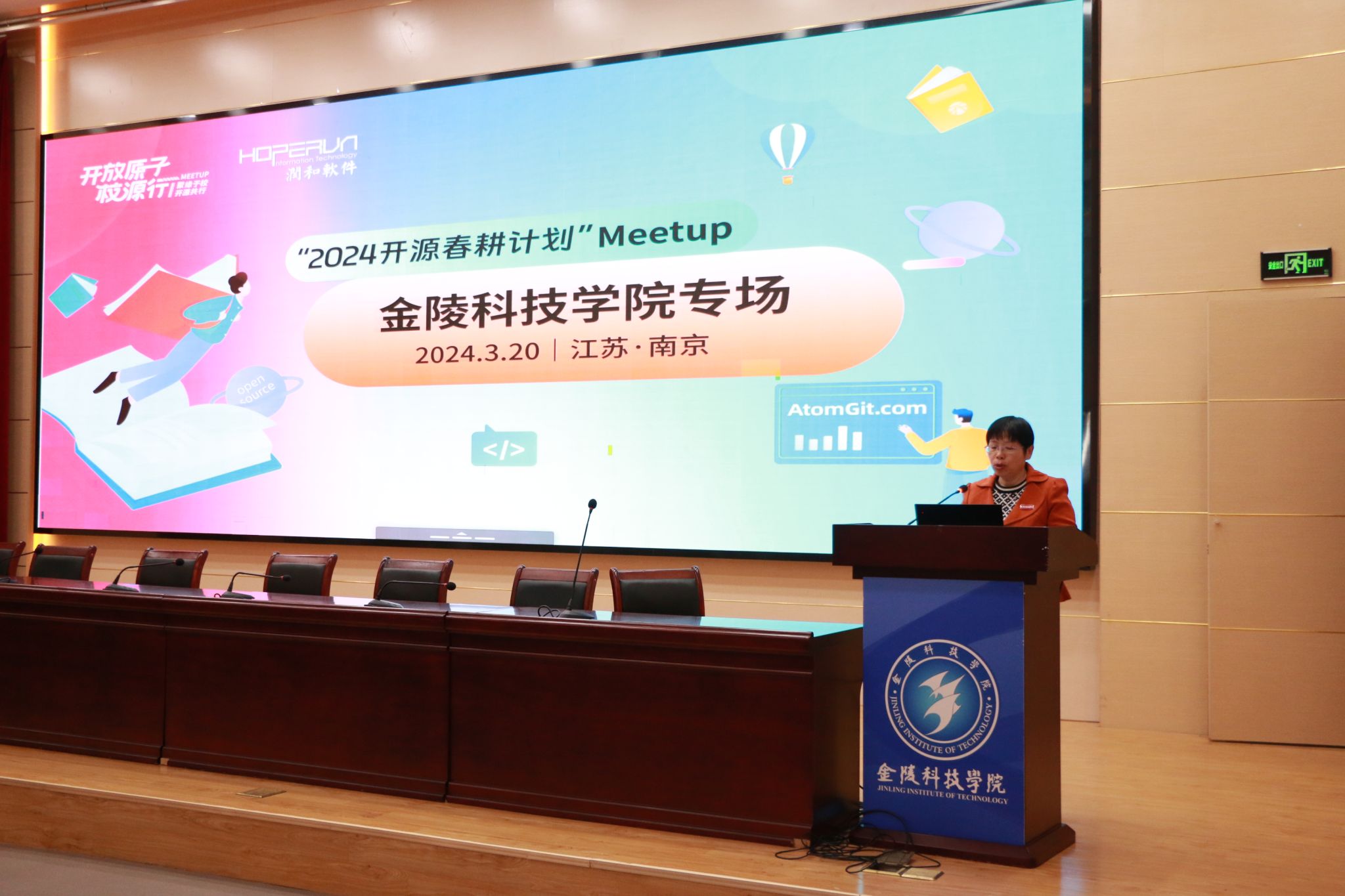 开放原子开源社团副社长李颖汇报了社团自成立以来的工作情况和未来发展规划,展示了在校大学生对开源技术的积极探索与实践。