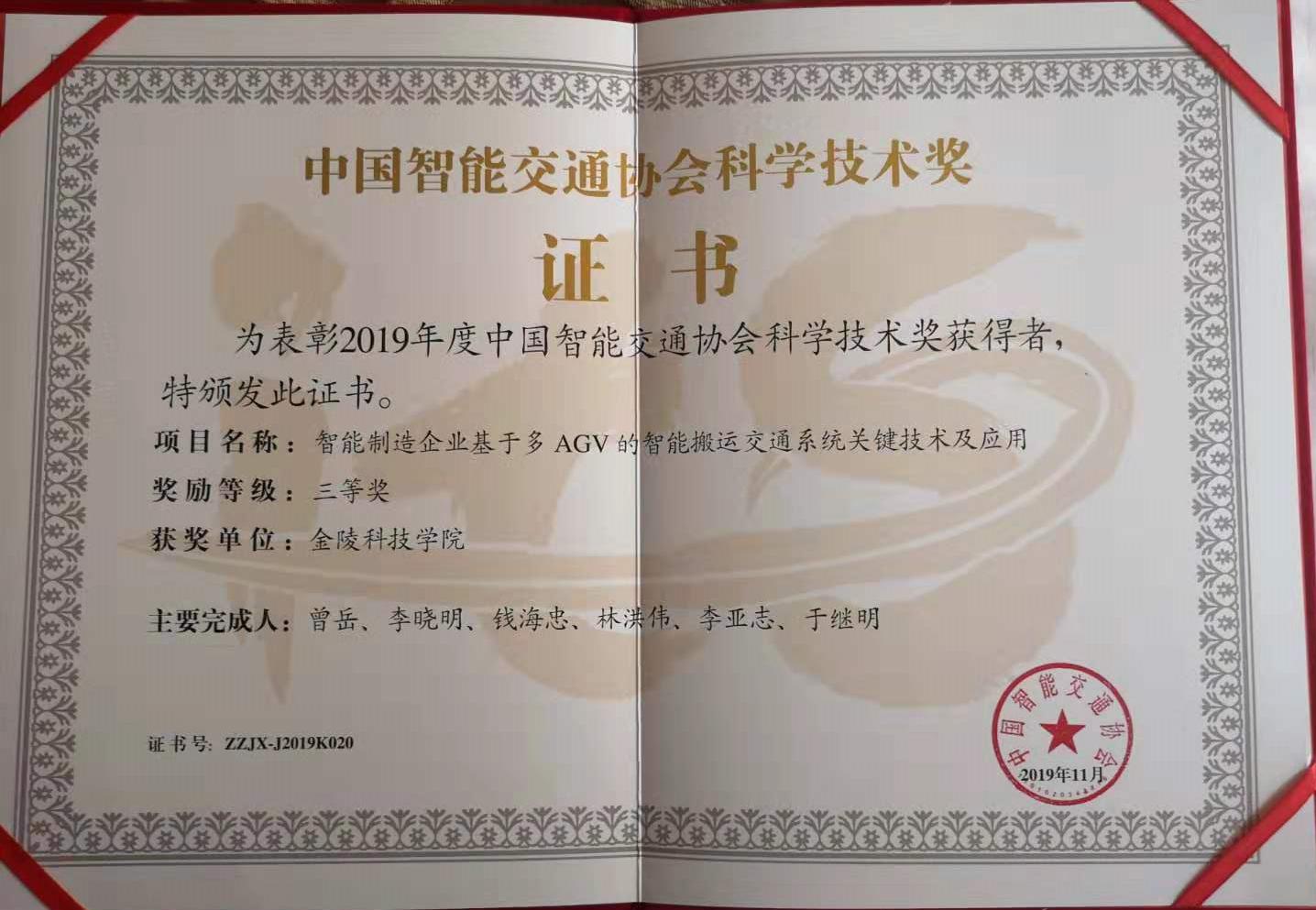 2019年度中国智能交通协会科学技术奖颁奖仪式在青岛银沙滩温德姆至尊酒店举办。Beat365官网软件学院曾岳教授作为第一完成人,及其团队共同完成的“智能制造企业基于多AGV的智能搬运交通系统关键技术及应用”获评三等奖
