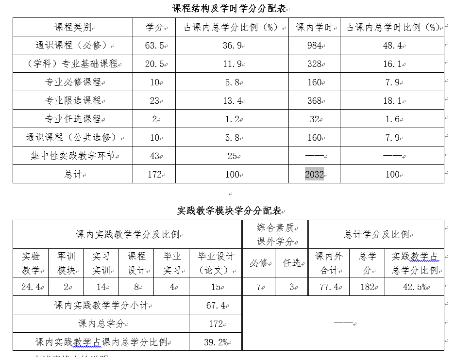 1.课内总学分指毕业生要达到的总学分(不含综合素质课外培养10学分);
