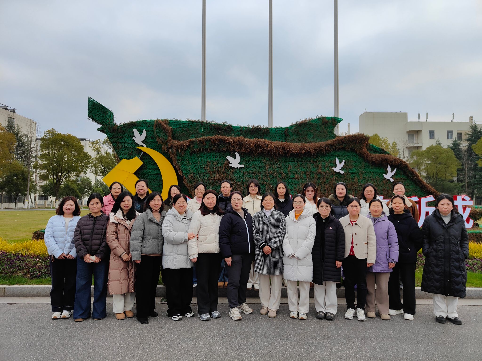 在校史馆接受精神的洗礼后,活动进入第二环节——校园健步走。下午3时整,女教职工们齐聚科技楼前的旗杆下,合影打卡后,健步走活动正式开始。队伍以旗杆处为起点,顺时针环绕校园一圈。一路上,欢声笑语不断,她们矫健的身姿成为了校园里一道靓丽的风景线,生动诠释了健康生活、快乐工作的理念。