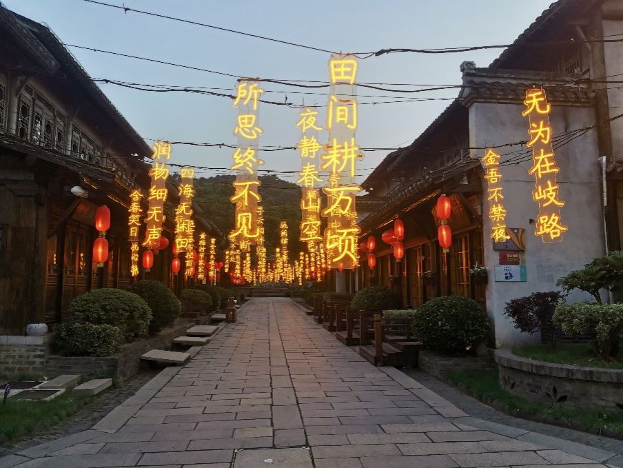 “千华古村”座落在句容宝华山国家森林公园内,掩映在宝华山的山脚下,是一处独具江南水乡特色的古村落。据考证,南京秦淮河的发源地之一就在此处,村边一处原名叫“蝶泉”的小湖泊,就是十里风光秦淮河的源头。古村群山环绕,满目青翠,湖光山色,空气清新,风景如画,街道两旁,店铺林立,古色古香的招牌随风摇曳,仿佛在低语着古村的繁华与变迁。大家漫步在古村的街头巷尾,感受着那独特的氛围,每一处都让人流连忘返。夜晚的千华古村更是别有一番风味,街头巷尾挂满了红灯笼,将整个古村点缀得如梦如幻,大家漫步在古村的夜色中,感受着那份宁静与祥和,同时也深深地被这片古老而宁静的古村落街巷所吸引,仿佛置身于一个充满诗意与故事的世界,感受着大自然的恩赐和历史的沉淀,忘却了尘世的喧嚣与烦恼,沉浸在那份宁静与美好之中。