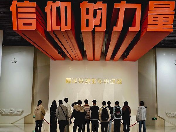 同学们怀着无比崇敬的心情来到南京雨花台烈士纪念碑向烈士们鞠躬祭奠。接着在带队老师的带领下走进雨花台烈士纪念馆,馆内设10个展厅,其中9个用于陈列展览革命烈士的事迹,宽敞明亮的展厅内按照中国共产党发展的四个历史时期为主线,串联各时期重要事件,以烈士牺牲时间先后为顺序,共陈列了127位牺牲在雨花台及南京地区的革命烈士的文物史料。参过参观学习,同学们深切感受到了涤荡心灵的震撼,对革命先烈在艰难困苦中始终坚守共产主义信念的初心和不畏牺牲、抛洒热血的执着表示崇高敬意。