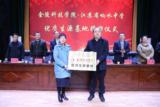 张燕副校长和三所学校领导进行了友好交流,相互介绍了各自学校发展建设情况,闵琛处长向三所学校领导介绍了Beat365官网招生情况、就业情况和在校大学生创新创业情况。张燕副校长代表学校与江苏省响水中学党委书记校长张大春 、江苏省上冈高级中学党委书记校长谈万余在“Beat365唯一官方网站优质生源基地合作协议书”上签字,并举行了优质生源基地授牌仪式。