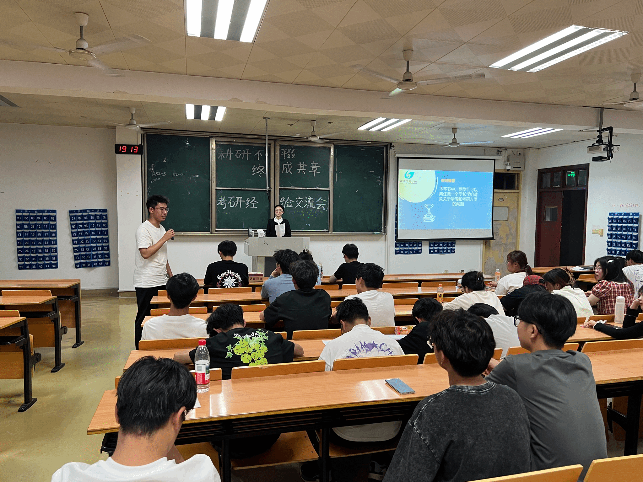 分享环节中,四位学长学姐分别从不同维度展开干货输出:周敏聚焦择校策略,建议结合个人兴趣、职业规划及专业基础评估目标院校,重点通过研招网、院校官网及直系学长学姐渠道获取招生简章、复试线、报录比等关键信息,强调“跨考需提前比对专业课难度与参考书目”;白继闯分享复习方法论,建议按“数学重刷题、英语重真题、专业课重框架”的逻辑分配时间,推荐《张宇30讲》等资料,并对比自学与报班的适用场景——公共课可自学搭配网课,专业课信息闭塞时建议报班;王雨露关注心态调节,针对焦虑、瓶颈期等问题,分享每周预留放松时间、设立目标奖励机制等技巧,并可以在不同时间进行相应的复习,以提高复习效率;杜尚波详解复试要点,拆解“笔试+面试”流程,强调导师对专业问题逻辑表达、科研经历及解决问题思路的关注,建议大家可以在学有余力的情况下多参加竞赛,提高自己的经验和水平。互动环节中,同学们就“如何正确获取相关信息”、“如何制定长期计划”等问题踊跃提问,学长学姐结合实例逐一解答。
