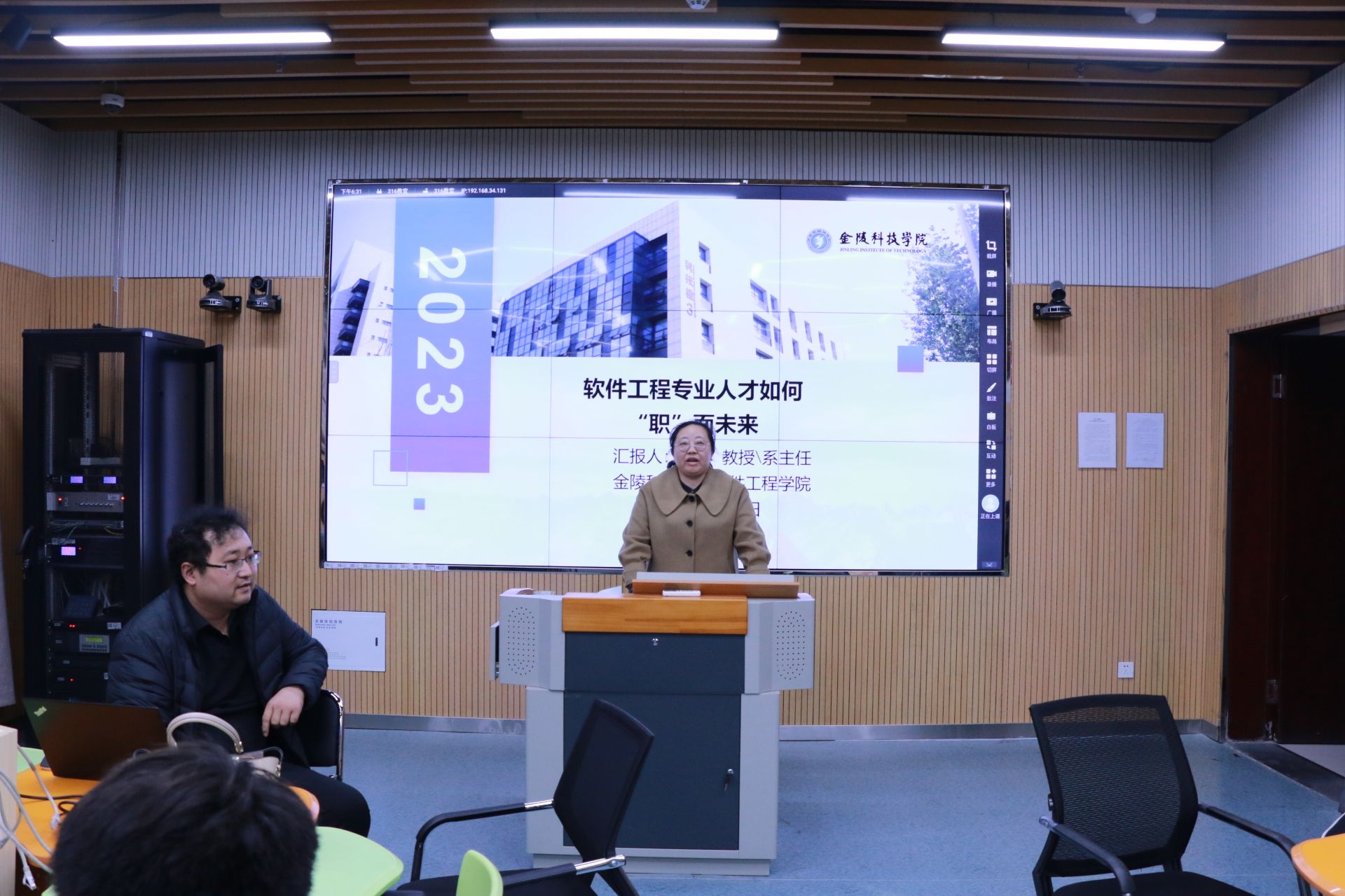 首先,洪蕾教授以《软件工程专业人才如何“职向未来?》为主题,分别从软件工程行业背景、“敲门砖”-简历、面试宝典、出口成章等方面介绍了IT行业的发展趋势、简历制作的深度解析、面试中初级研发人员应具备的基本素质及面试技巧、沟通的基本技巧及面试官的读心术,她深入浅出的讲解方式得到了同学们的阵阵掌声。接着,徐良博士在Java开发领域对同学们进行了详细的介绍,精通Java语言和熟悉主流开源应用框架,如SpringMVC3、SSH、DUBBO等,能够协同开发,对缓存的使用也需非常熟悉,包括Redis或Memcache等。同时要求同学们需要熟悉MySQL(或MariaDB)数据库应用开发,包括数据库配置管理和性能优化等基本操作技能,同学们收益颇多。朱咸军博士从Web前端工程师、Java工程师、高级Java工程师、数据库工程师(DBA)、系统设计工程师、系统测试工程师等专业素养要求、职位描述、工作要求以及薪资待遇进行了详细的介绍,从自身的实践经验出发,他们分享了关于职业生涯规划的独到见解,同学们听的津津有味。最后,20届毕业生陆杏智结合自己的成长经历,介绍了他在大学期间学习软件开发、参与教师科研项目和江苏省大学生实践创新项目、参与各类学科竞赛等学生活动并逐步取得系列成果的过程,通过自己的努力并创建了南京雄君软件科技有限公司。他的经历激励了在场的同学们,使他们对于未来的职业发展也充满了期待。