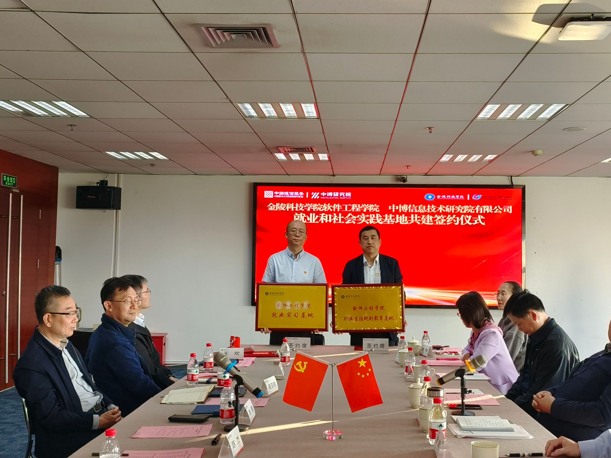 中博信息技术研究院有限公司作为江苏省高新技术企业,拥有丰富的行业经验和优质的实践平台,能够为学生提供宝贵的实践机会和就业指导。在访问期间,双方就人才培养、实习就业合作等方面进行了深入交流。双方签署了就业基地共建协议,并举行了授牌仪式。软件学院党委书记戴军和中博研究院总经理张鹏分别代表双方签字并致辞。通过此次合作,学院将把企业的技术前沿和实战经验引入课堂,加强学生的实践能力和创新能力培养,企业将提供全方位的支持和资源,帮助学生更好地了解行业动态,提升自身竞争力,共同推动软件工程教育事业的发展。