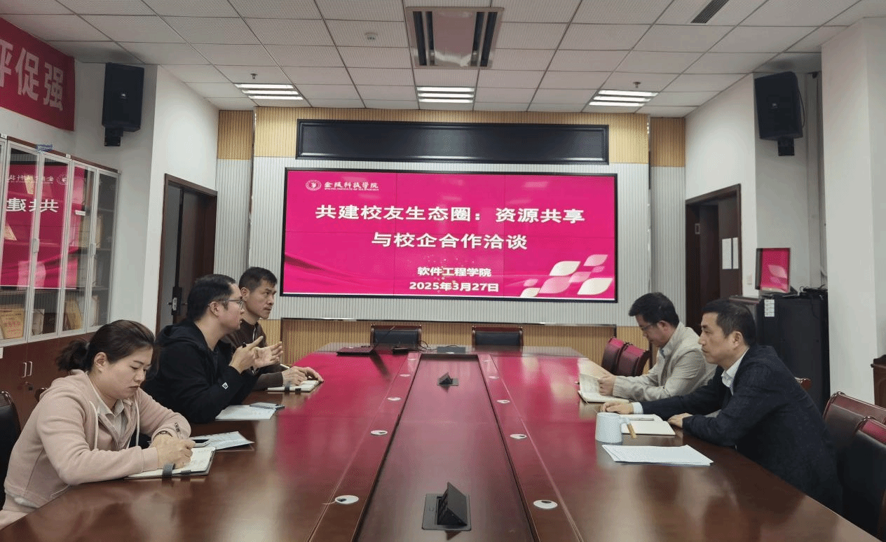 为深化产教融合、促进校友资源共享,搭建校企协同育人平台,3月27日,软件学院在科技楼2-325会议室举行了“共建校友生态圈:资源共享与校企合作洽谈会”,软件学院党委书记戴军、副书记徐斌出席了洽谈会,本次会议邀请了南京薄暮软件科技有限公司总经理、2017届校友任远东返校参会,与会人员围绕校企合作、人才培养、创新创业等主题展开深度交流,共绘合作发展蓝图。