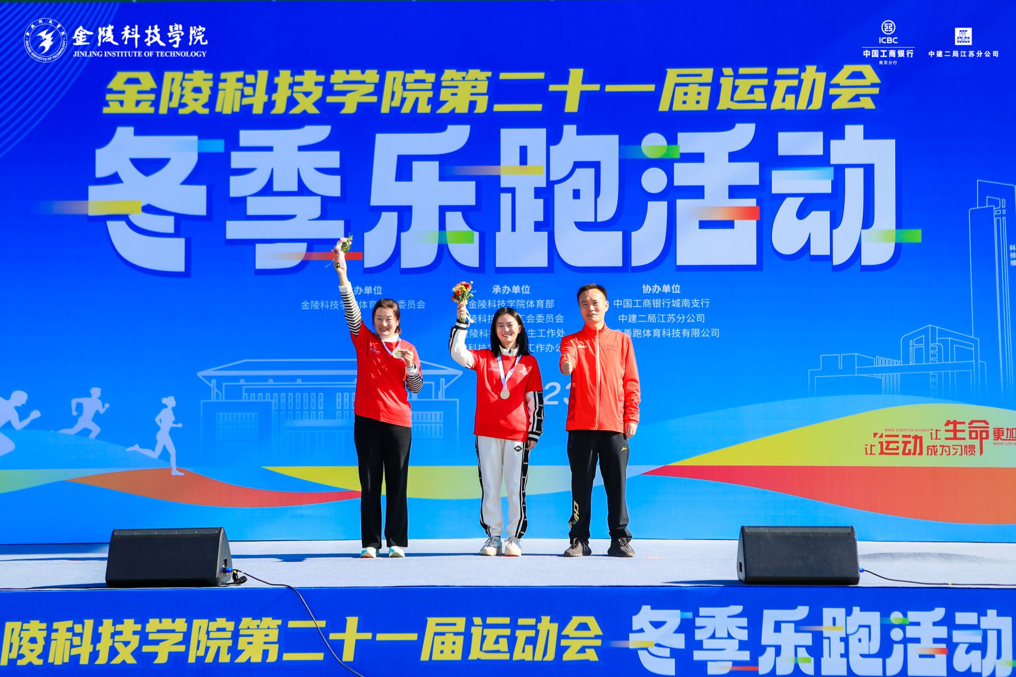 纪委书记王延光为获得校友女子5公里前二名颁奖