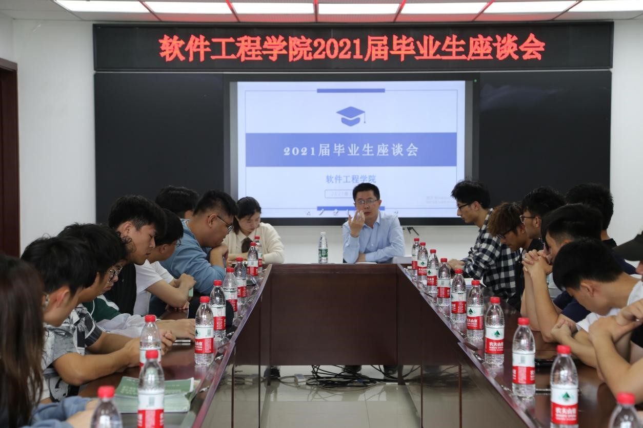 座谈会伊始,徐斌书记对毕业生们表达了关切的问候,并邀请他们对学院专业建设、学生工作方面的体会提出自己的感想与建议。随后,毕业生代表们积极进行发言,他们都纷纷对学院四年的栽培表示了感谢,同时提出了自己对于学院教学课程、毕业设计、专业实习等方面的体会与建议。17级软件工程(1)班的庄佳枫表示学校四年的培养让他提高了自己的沟通与表达能力,在校内所习得的专业课程也使他在工作中处于优势地位,同时也希望学院能够加强实践项目的宣传与教育,切实加强同学们的项目能力,以便适应毕业之后的工作环境。徐斌书记对毕业生代表们提出的问题一一做出了解答,感谢大家为学院发展提出的建议,并表示学院将进一步改进工作,服务学生成长。希望同学们今后仍与母校保持密切沟通和联系,在新征程中展翅高飞,砥砺前行,谱写出人生的新篇章。