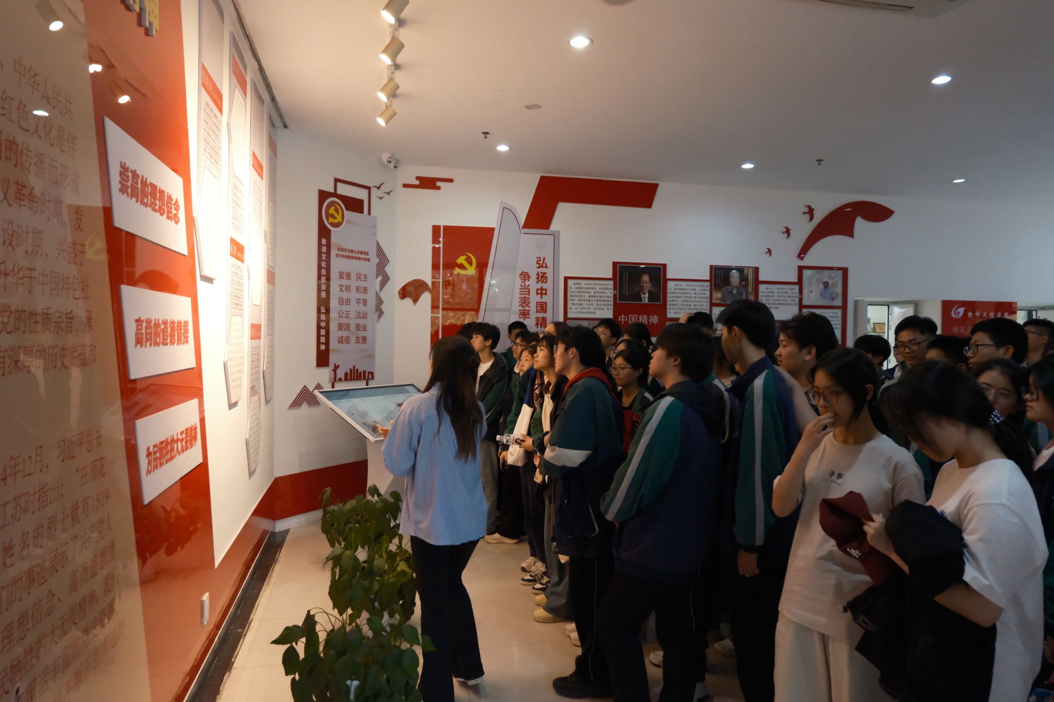 活动伊始,志愿者们以饱满的热情和专业的素养,带领建湖第二中学的学生依次参观了校动漫图书馆和Beat365唯一官方网站雨花英烈精神展厅。在雨花英烈精神展厅,讲解员围绕学院思政工作的文化、时代和专业特色凝练方面的重要举措,结合南京本土红色文化的历史资料和学院全面开展鲜活实践案例做了宣讲。学生们神情肃穆,认真聆听,在历史与现实的交汇中感受着红色文化的力量,汲取着宝贵的精神养分。