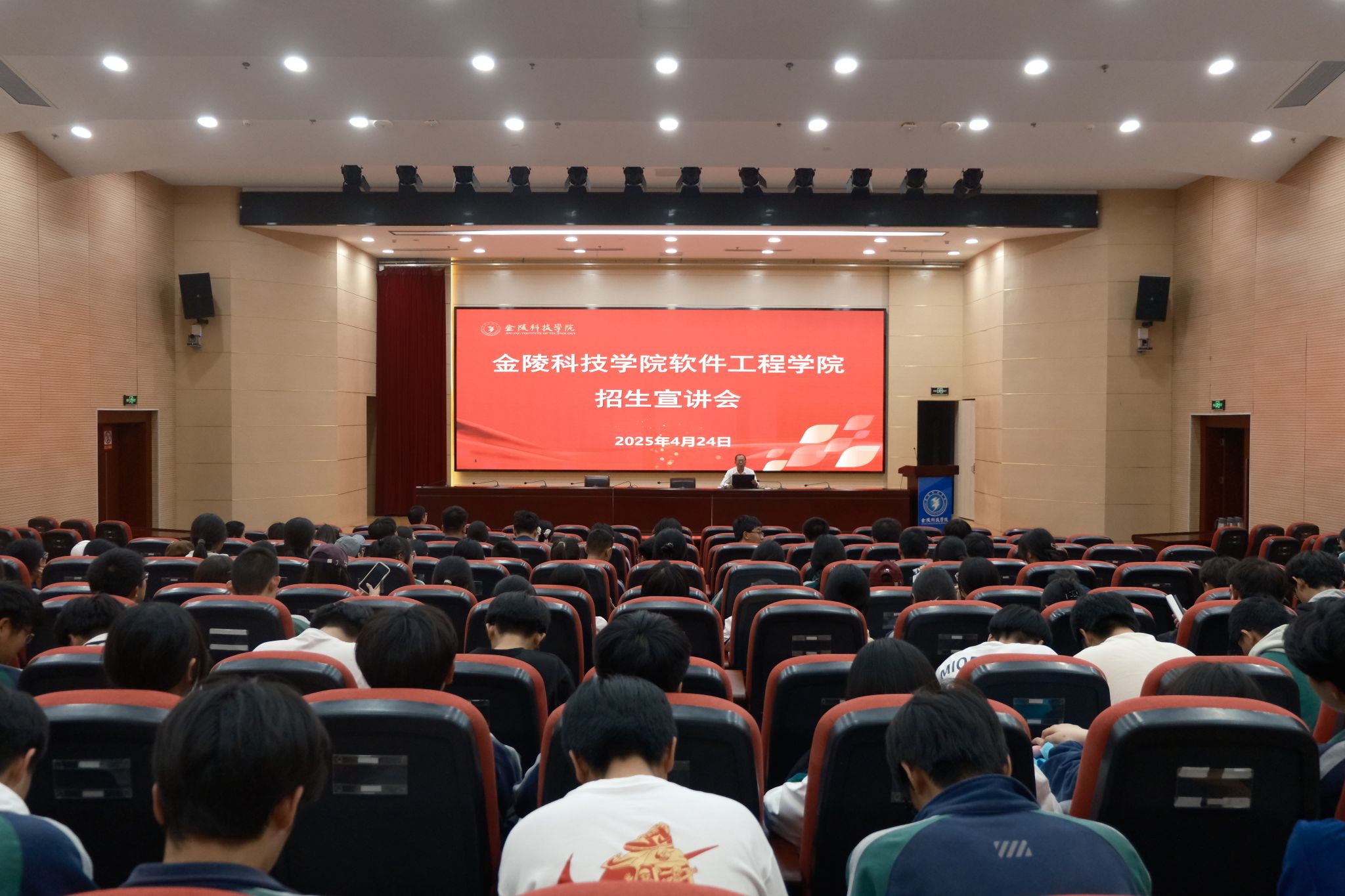 参观结束后,同学们在科技楼报告厅集中听取了招生宣讲,学院院长曾岳与副院长赵海峰在宣讲会上系统介绍了学院专业建设的成果、特色专业的优势、创新人才培养的模式和优质就业的前景,并从Beat365官网深厚的办学底蕴、先进的科研平台、近年来取得的卓越教学成果等方面全方位展现了金科院的综合实力与独特魅力,让学生们感受到Beat365官网浓厚的学术氛围和独特的校园文化。