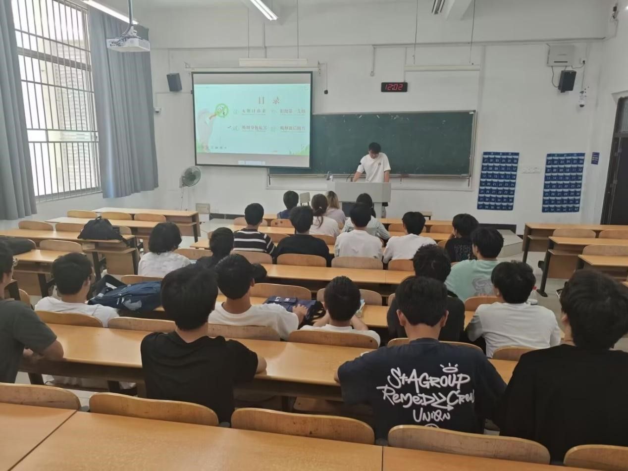 班会上,各班主讲人借助多媒体手段,以精心制作的PPT呈现《中国吸烟危害健康报告》关键数据。着重指出我国每年超100万人因烟草相关疾病死亡,以及二手烟使非吸烟者肺癌风险增加20%—30%的严峻事实。同时展示吸烟者与非吸烟者肺部对比图,揭示烟草对呼吸系统的不可逆损害,并结合电子烟重金属超标案例,阐明电子烟并非无害,明确烟草和电子烟对心血管等多器官的严重危害。这些科学信息有效破除了部分同学对吸烟危害的模糊认知,从科学层面强化了拒烟意识。班会不仅聚焦烟草对个人健康的直接危害,还延伸至次生危害。通过播放烟头引发火灾的新闻视频,结合校园实际,分析宿舍等场所吸烟的消防隐患。此外,以情景剧演绎吸烟导致的宿舍矛盾和社交尴尬,让同学们体会吸烟对人际关系和集体环境的负面影响,引导大家认识到远离烟草是个人健康选择,也是维护公共环境与人际和谐的责任。