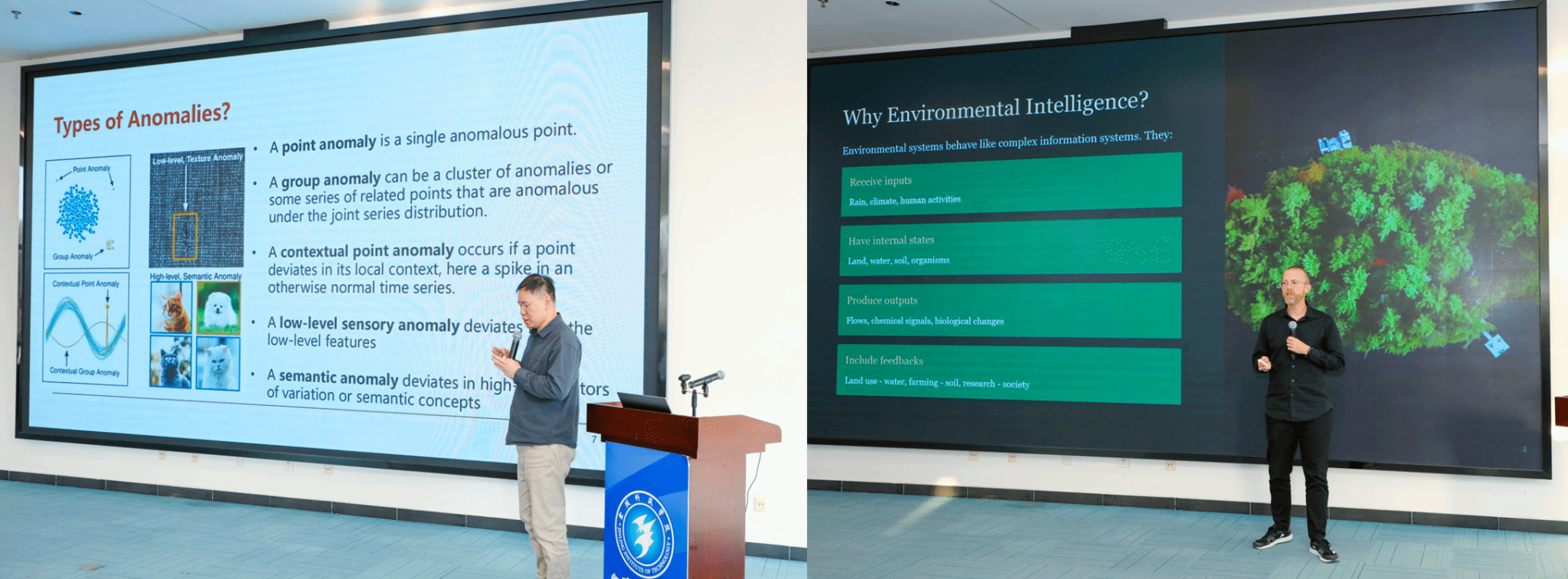 在学术报告环节,五位专家围绕可解释人工智能、单细胞智能测序平台、多模态学习不确定性建模、异常检测机制、环境智能等前沿方向,系统介绍了最新理论突破、模型构建及落地实践,为参会师生带来多视角、跨领域的学术启迪。现场交流氛围热烈,师生提问踊跃,研讨深入充分,展现出浓厚的学术思辨氛围。