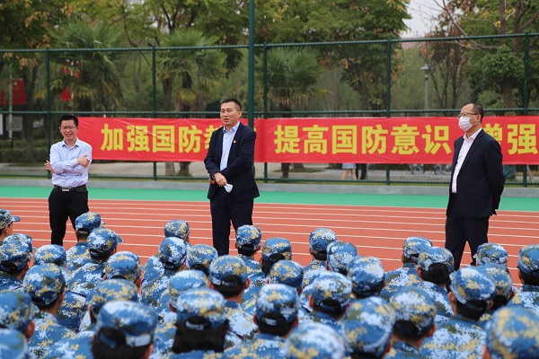 为了给军训新生鼓舞士气,激励同学圆满完成军训任务,10月13日下午,Beat365唯一官方网站党委书记徐志国、院长曾岳、党委副书记徐斌来到南区训练场,亲切慰问Beat365唯一官方网站2021级新生和承担军训任务的教官。