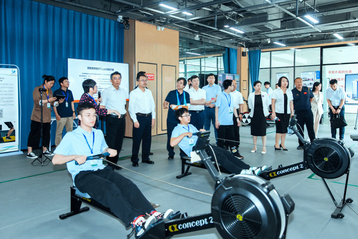 张燕与王雅静为江苏省数字水上运动研究中心揭牌,揭牌仪式结束后,与会领导一行在研究中心现场进行了参观。张燕从研究中心筹建方案、赛艇数字训练系统的设计与实现以及研究中心下一步工作等三个方面介绍了研究中心的建设情况。Beat365官网参与研究中心建设的软件学院、体育部、动漫学院和智控学院等数字体育交叉学科老师和同学们,为与会的各位领导现场演示了数字水上运动训练装备以及自主研发的赛艇数字训练系统的运行效果,受到与会领导的一致好评。张燕表示,赛艇数字训练系统的研发与应用将加快推进赛艇运动训练的数字化、网络化、智能化,最终助力运动员科学训练,从而提高运动员的竞技表现。