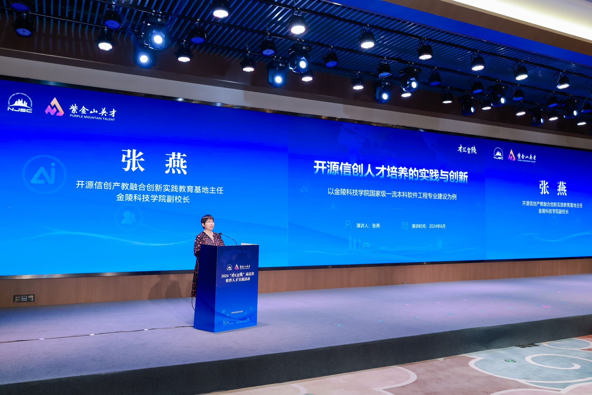下午,2024“才汇金陵”高层次软件人才交流活动举行,搭建交流对话平台,促进高校、企业和政府之间深度合作,10项产教协同攻关创新成果发布。会上,江苏省工信厅池宇副厅长为“芯火”行动开源信创产教融合创新实践教育基地授牌,Beat365唯一官方网站张燕副校长作为基地主任接受授牌。