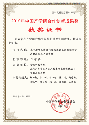 胡兴柳,基于新型高精度传感技术的高炉监测系统关键技术及产业应用,中国产学研合 作创新成果奖,二等奖,2019 年