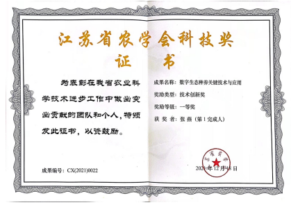 张燕,数字生态种养关键技术及应用,江苏省农学会科技奖,一等奖,2021